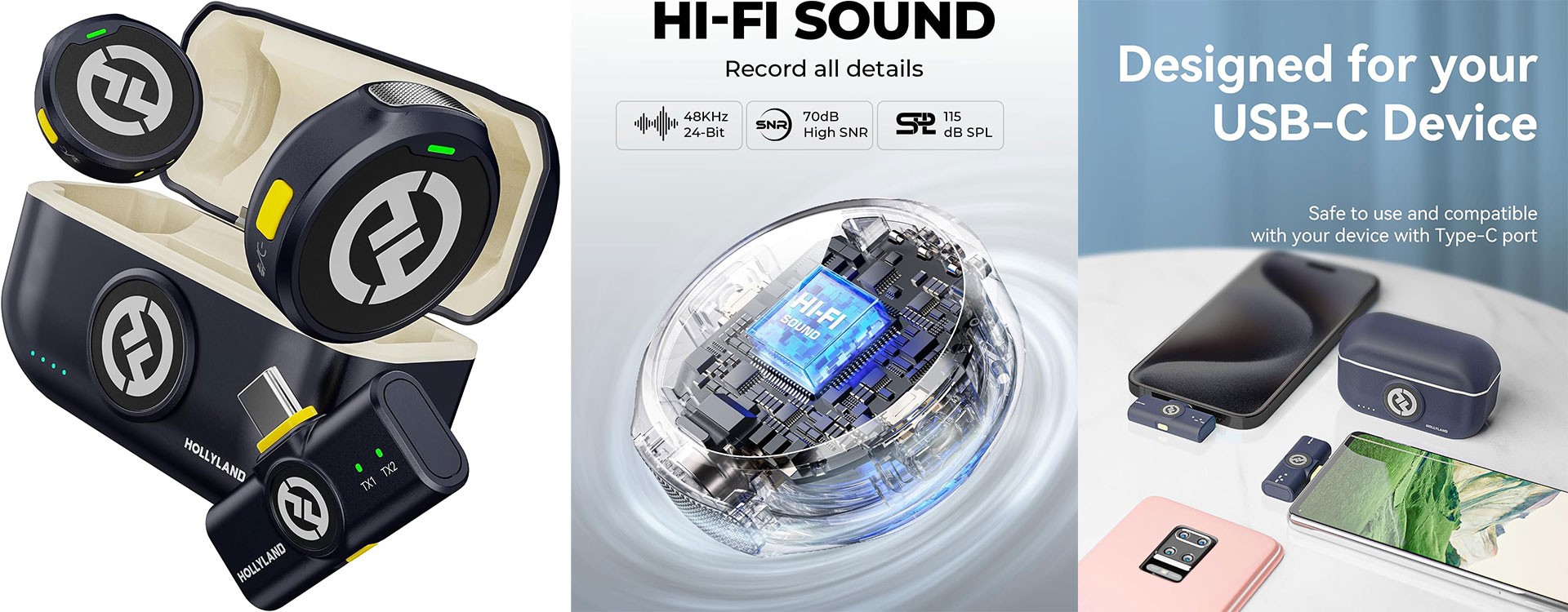• Lavalier mics with USB-C and Bluetooth compatibility