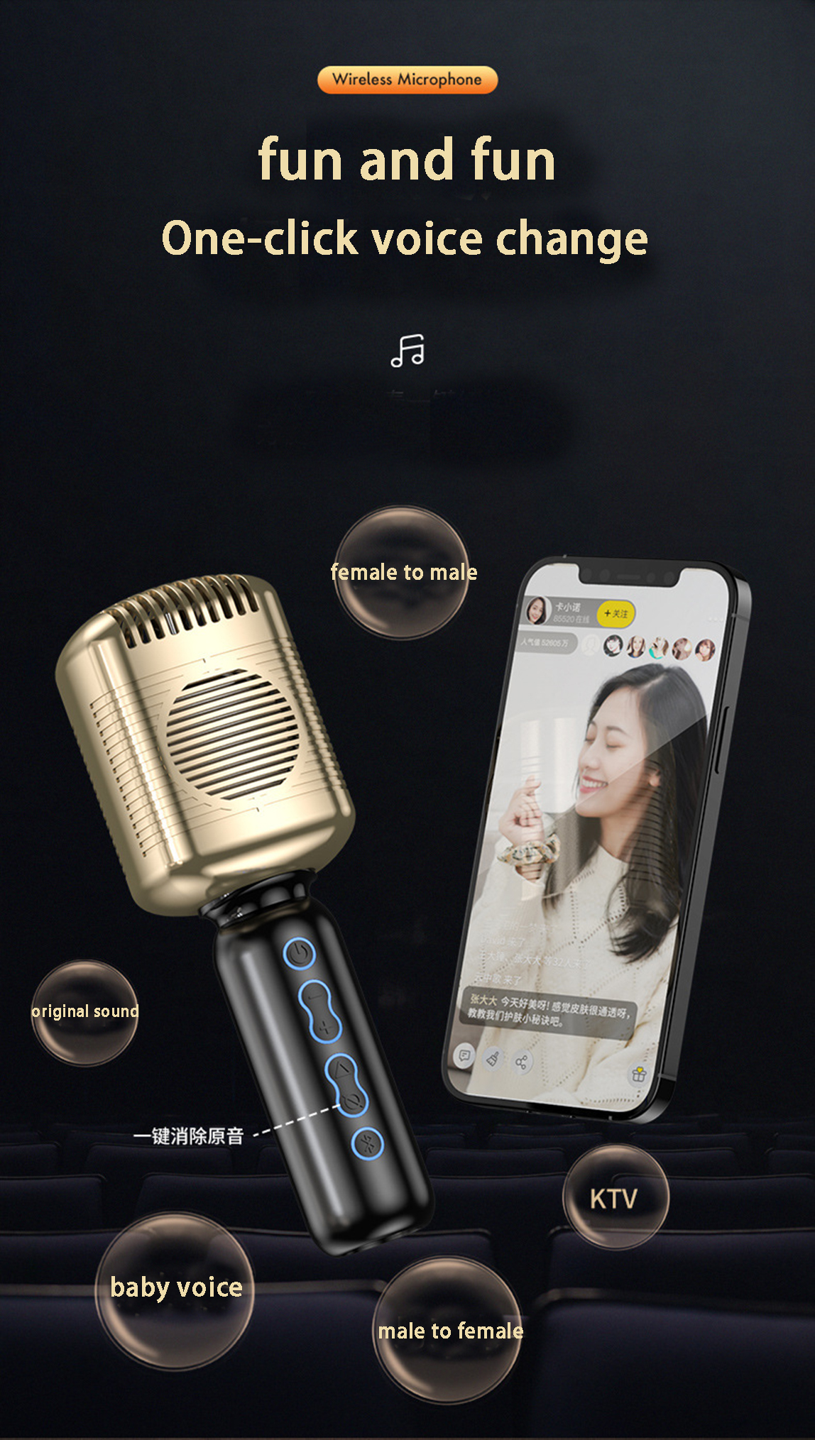 This Bluetooth microphone is the perfect tool for you to unleash your musical talents! This best microphone wireless is easy to use and provides superior sound quality. It is ideal for karaoke nights, parties, and more. Its built-in audio filters make it great for recording and recording voiceovers. Easy to use anywhere! Enjoy singing along to your favorite tunes with this best microphone wireless!This Bluetooth microphone will bring your family or friends a wonderful singing experience at indoor or outdoor parties!