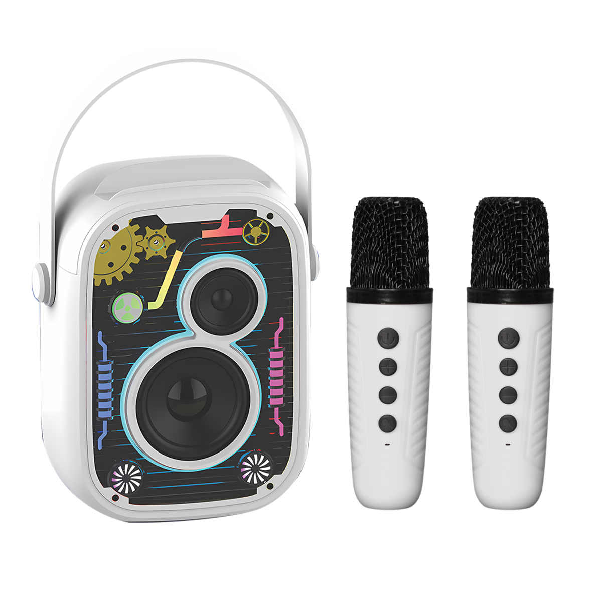 Bluetooth karaoke speaker with wireless mic brings powerful sound and stylish design together. Featuring dual bass woofers and a modern RGB light show, this speaker turns any gathering into a lively event. Perfect for users seeking the best karaoke portable speaker, it delivers crisp vocals and deep bass. Whether you're hosting a party or enjoying a solo jam session, this karaoke portable Bluetooth speaker ensures a top-tier music experience with wireless convenience and Bluetooth 5.3 technology